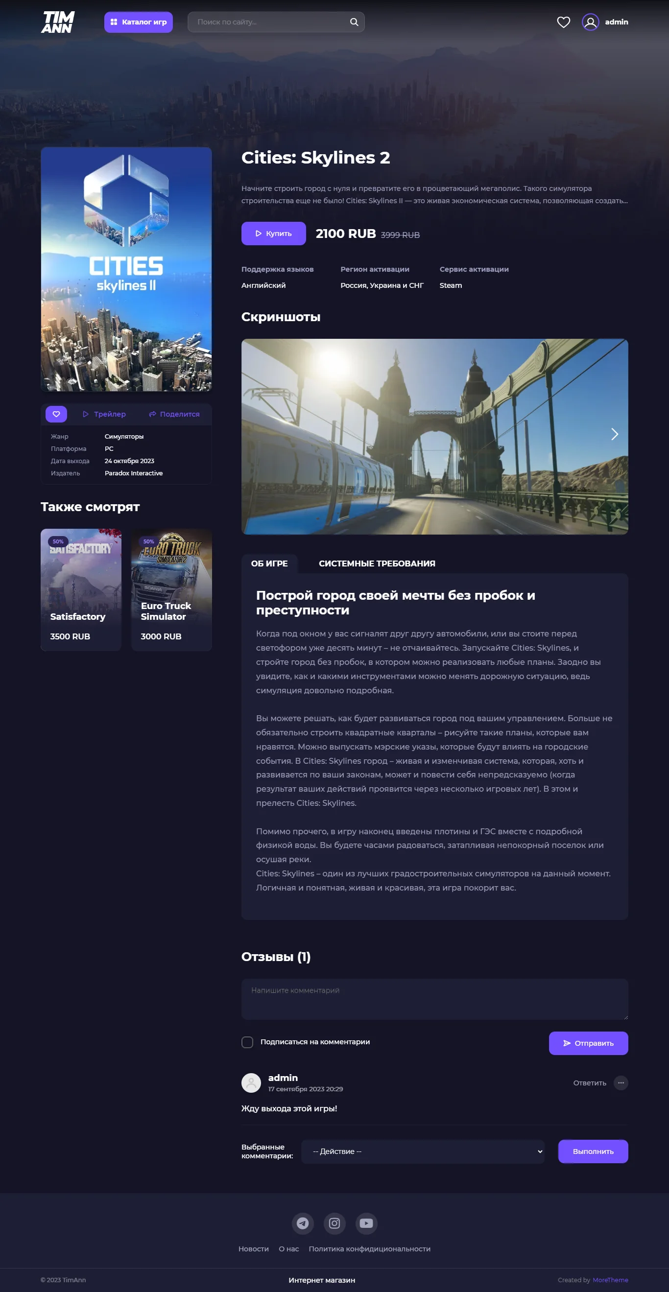 Шаблон в темносинем тоне, идеально подходящий для продажи игр и игровых ключей. Элегантный дизайн и удобная структура сайта помогут пользователям быстро найти нужные товары