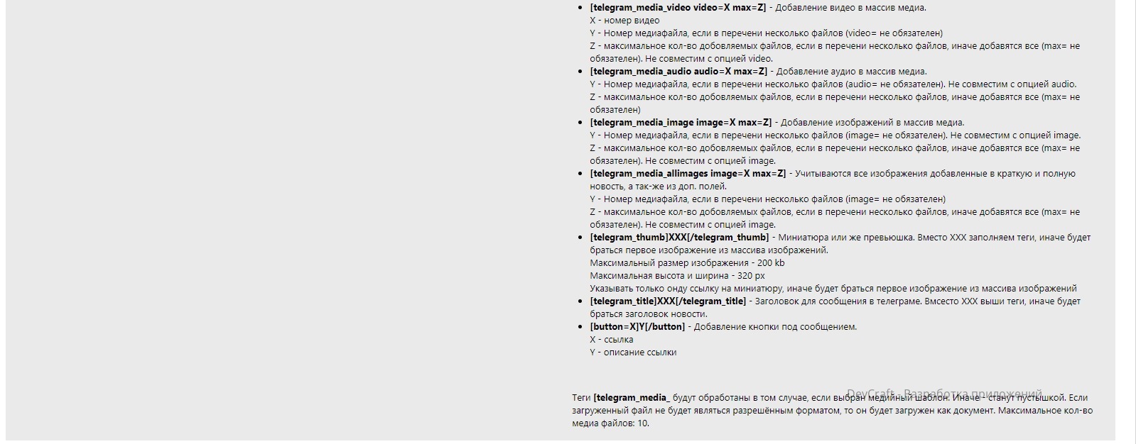 - Доступны все теги, что используются в полной новости