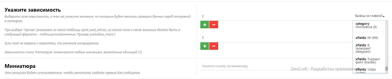 - Добавлена поддержка миниатюр, для превью контента